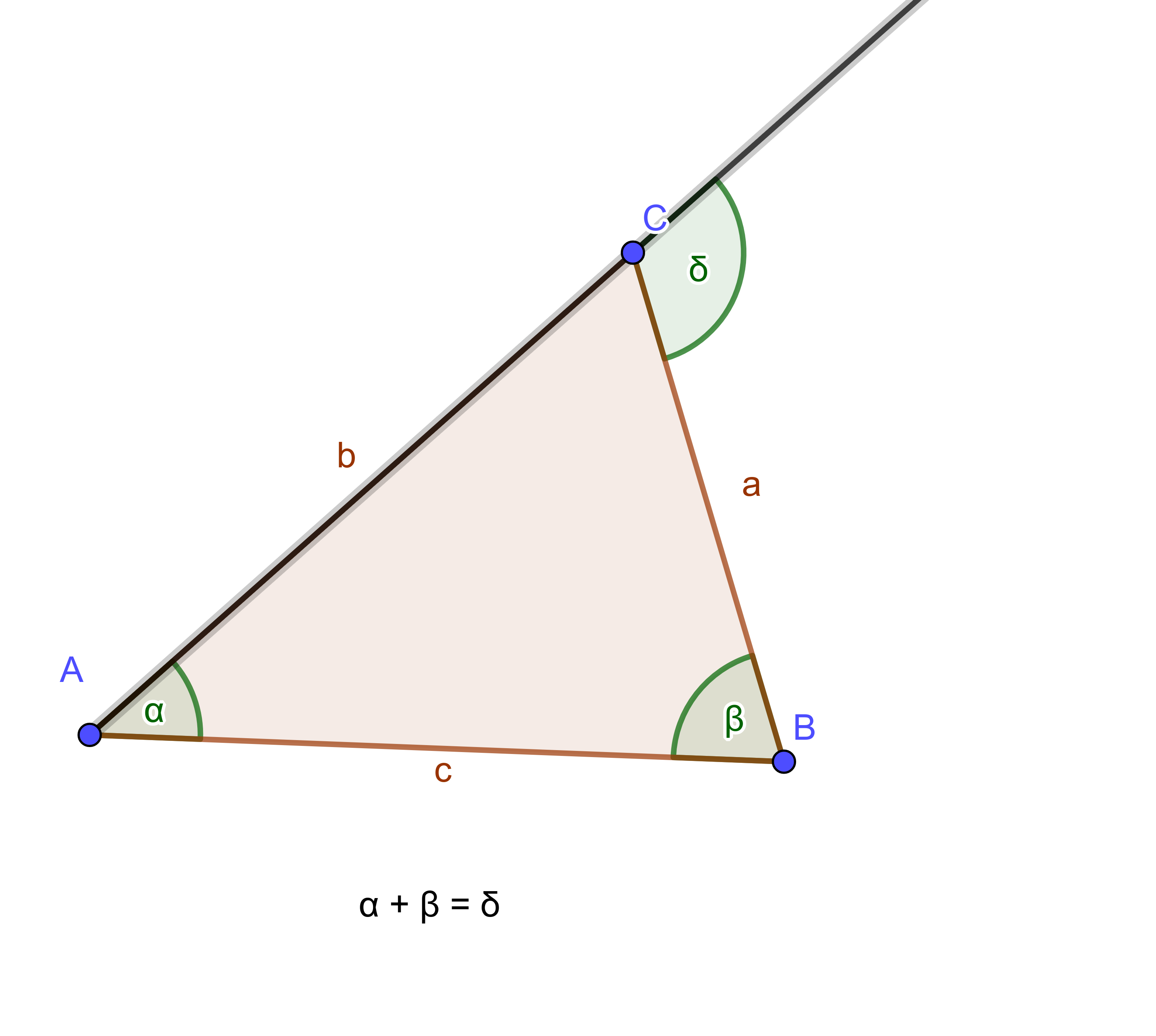 Jeder Außenwinkel eines Dreiecks ist so groß wie die Summe der beiden nicht anliegenden Innenwinkel.