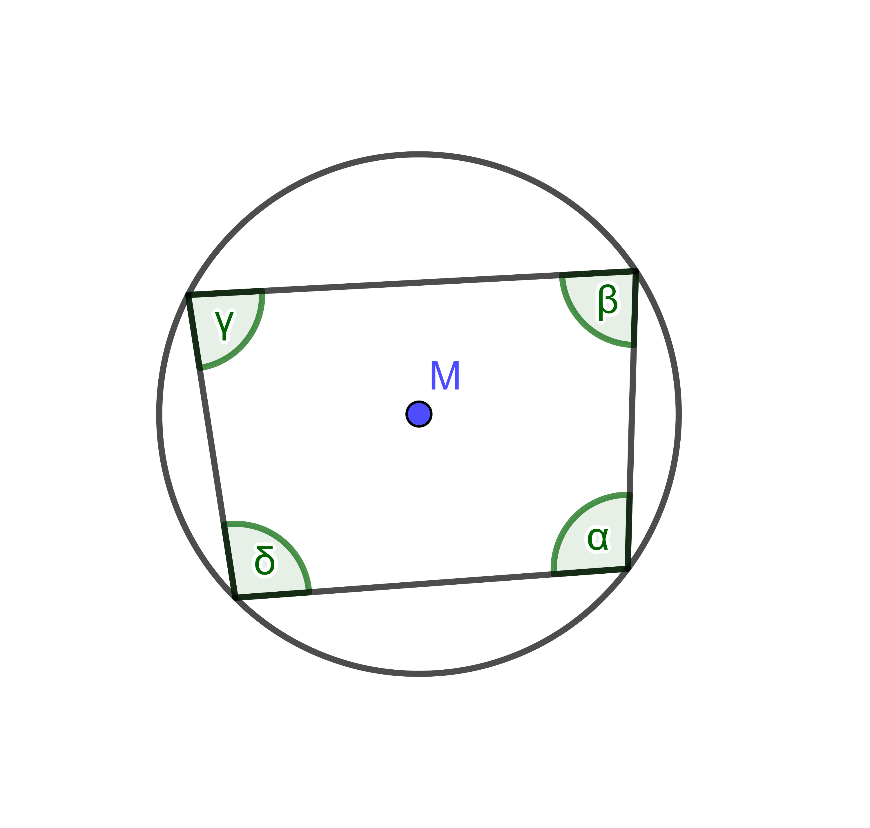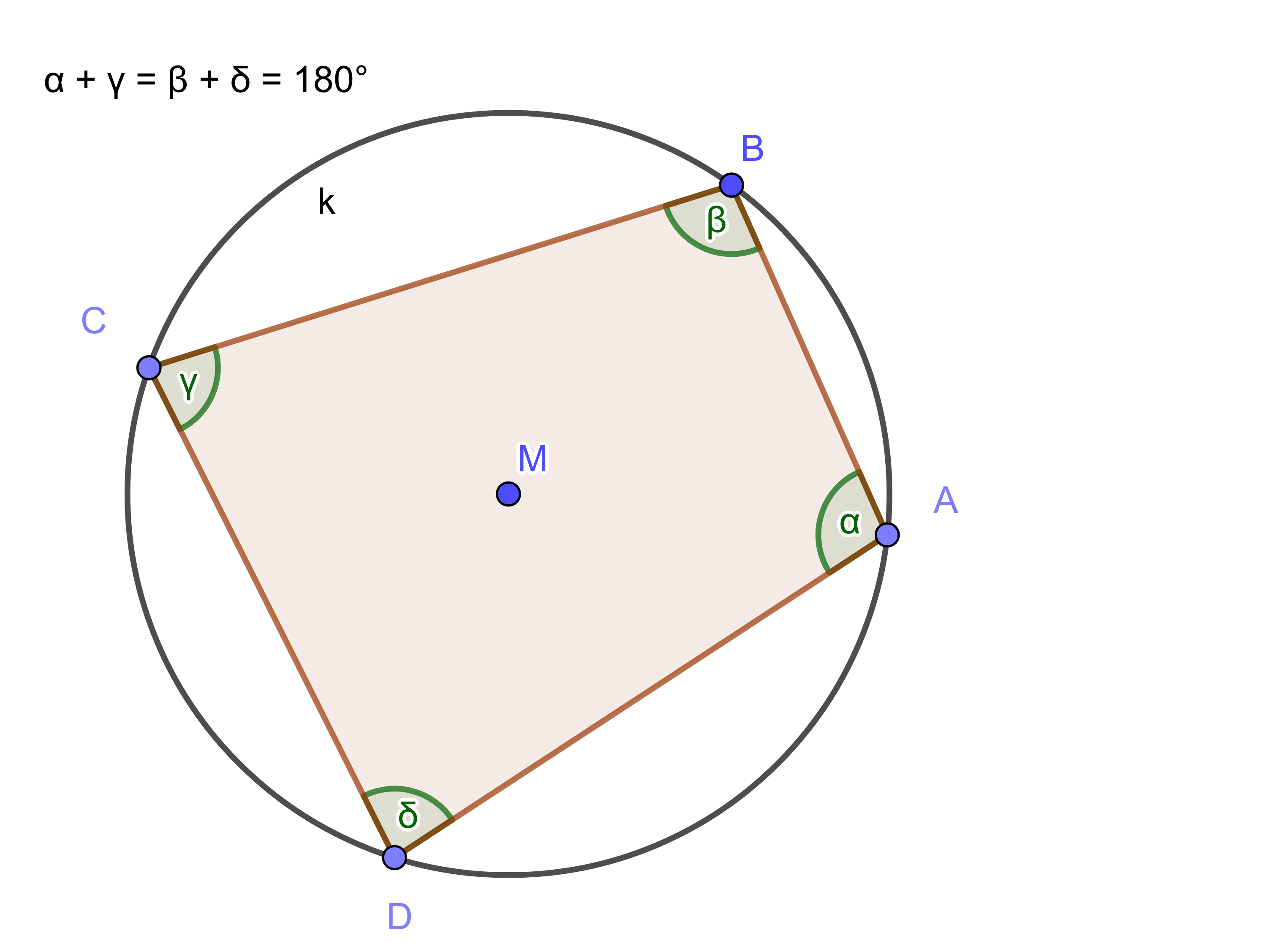 In jedem Sehnenviereck beträgt die Summe der gegenüberliegenden Winkel jeweils 180$^\circ$