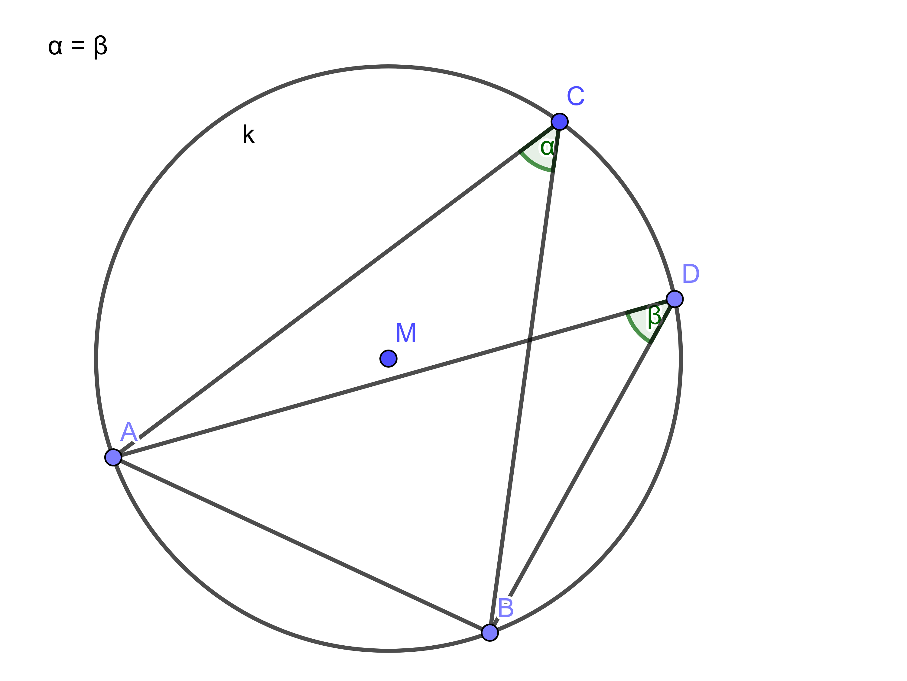 Peripheriewinkel über derselben Sehne eines Kreises sind gleich groß.