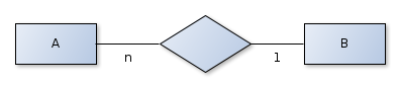 - Bei einer n-1-Relation ist jedem Element der Entitätsmenge A ein Element der Entitätsmenge B zugeordnet. Einem Element der Entitätsmenge B können mehrere Elemente der Entitätsmenge A zugeordnet sein. Erhandelt sich also um eine eindeutige Zuordnung.