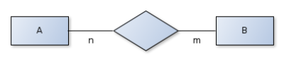 - Bei einer n-m-Relation können jedem Element der Entitätsmenge A mehrere Elemente der Entitätsmenge B und jedem Element der Entitätsmenge B mehrere Elemente der Entitätsmenge A zugeordnet sein. Es handelt sich also um eine mehrdeutige Zuordnung.
