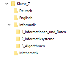 Der Dateimanager (Windows: Explorer, MacOS: Finder, Linux: z.B. Nautilus) verwaltet unsere Dateien und Ordner. In Ordnern können Dateien und wieder Ordner befinden.