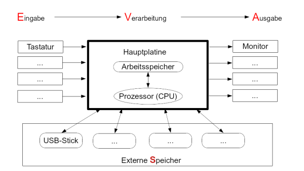 Gerät | Eingabe | Verarbeitung | Ausgabe | Externe Speicher |