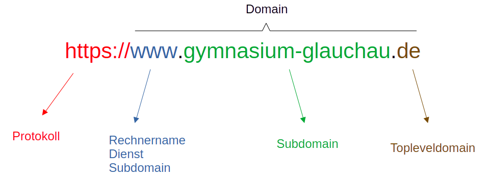- Subdomain: Nach dem ersten Teil der Domain können mehrere Subdomains folgen.