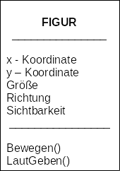 Figuren sind Objekte, die sich auf der Bühne bewegen oder andere Aktionen ausführen. Ein Klassendiagramm einer Figur könnte etwas so aussehen: