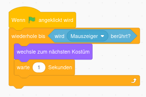 Jetzt wird die Schleife erst abgebrochen, wenn der Mauszeiger die Figur berührt, also wenn eine bestimmte Bedingung erfüllt ist.