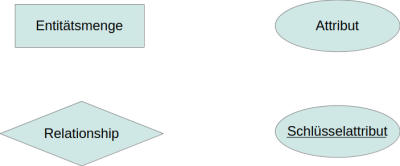 Ein ER-Diagramm ist die grafische Darstellung eines bestimmten praktischen Sachverhalts und seiner Zusammenhänge, für den eine Datenbank erstellt werden soll. Aus dem ER-Diagramm werden dann die Datenbanktabellen (relationale Modellierung) abgeleitet. Die folgenden grafischen Elemente kommen in einem ER-Diagramm vor:
