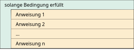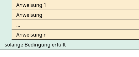 Häufig wiederholen sich Anweisungen in Algorithmen. Solche Anweisungen lassen sich in der Datenstruktur Schleife zusammenfassen. Die Frage ist nun, wie oft die Anweisungen wiederholt werden sollen. Auf diese Frage gibt es mehrere Antworten:
