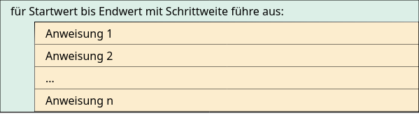 Für Startwert bis Endwert mit Schrittweite führe aus: …Anweisungen…