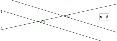 - Stufenwinkel $\alpha, \beta$ an geschnittenen Parallelen $g, h$ sind gleich groß.