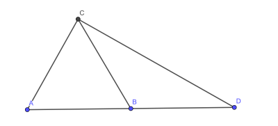 Gegeben Sei ein gleichseitiges Dreieck ABC. Auf der Verlängerung von $\overline{\text{AB}}$ über B hinaus liegt ein Punkt D so, dass $\overline{\text{AB}}=\overline{\text{BD}}$ gilt. Was lässt sich dann über den Winkel $\angle \text{ACD}$ aussagen? Triff eine Vermutung und beweise sie!