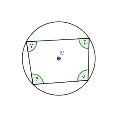 In jedem Sehnenviereck beträgt die Summe der gegenüberliegenden Winkel jeweils 180$^\circ$