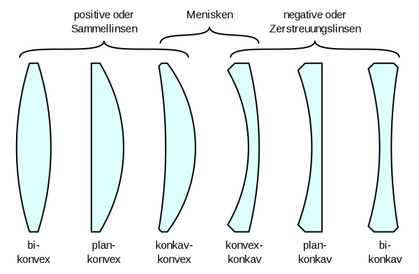Konkavlinsen, auch Zerstreuungslinsen genannt, brechen parallel einfallende Lichtstrahlen so, dass sich die Lichtstrahlen im Raum zerstreuen.
