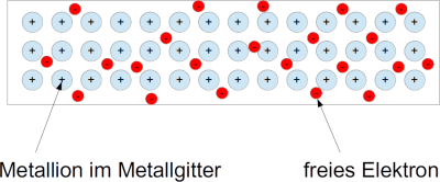 Metalle bestehen aus einem Gitter aus Metallionen. Zwischen den Ionen des Gitters befinden sich frei bewegliche Elektronen.
