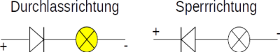 Eine Diode ist ein richtungsabhängiger Widerstand, d. h. der elektrische Strom wird nur in einer Richtung durchgelassen.