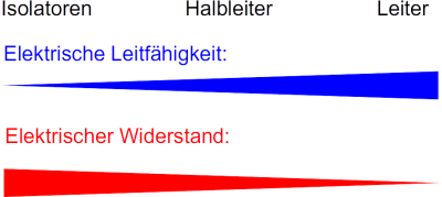Feste Stoffe kann entsprechend ihres elektrischen Widerstands einteilen in Leiter, Nichtleiter (Isolatoren) und Halbleiter.