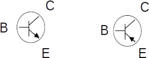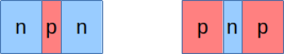 Ähnlich wie eine Diode ist ein Transistor auch aus n- und p-leitenden Silizium. Wir unterscheiden zwischen npn- und pnp-Transistoren.