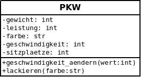 Aus diesen beiden Objekten kann man jetzt eine Klasse PKW bilden: