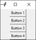 import tkinter def ende(): main.destroy() main = tkinter.Tk() button1 = tkinter.Button(main, text="Button 1", command = ende).pack() button2 = tkinter.Button(main, text="Button 2", command = ende).pack() button3 = tkinter.Button(main, text="Button 3", command = ende).pack() button4 = tkinter.Button(main, text="Button 4", command = ende).pack() main.mainloop()