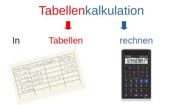 Eine Tabellenkalkulationsdatei kann man sich als eine Art Sammlung von elektronischen Rechenblättern vorstellen, die In Tabellenform angeordnet sind. Damit lassen sich Berechnungen sehr effektiv durchführen und in übersichtlicher Form darstellen.