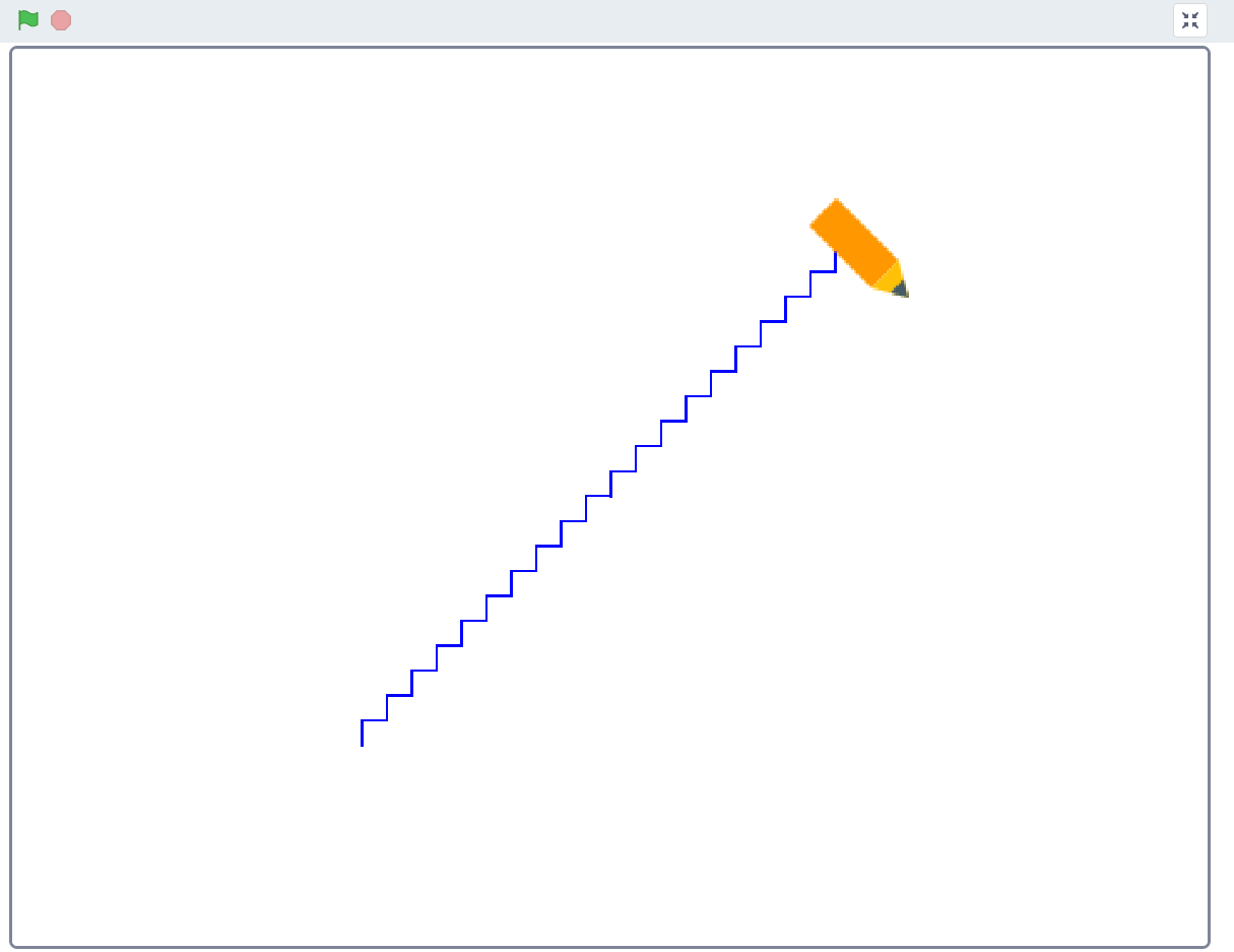 Erstelle die folgende Zeichnung einer Treppe mit 20 Stufen mit Scratch. Nutze dazu Zählschleifen!