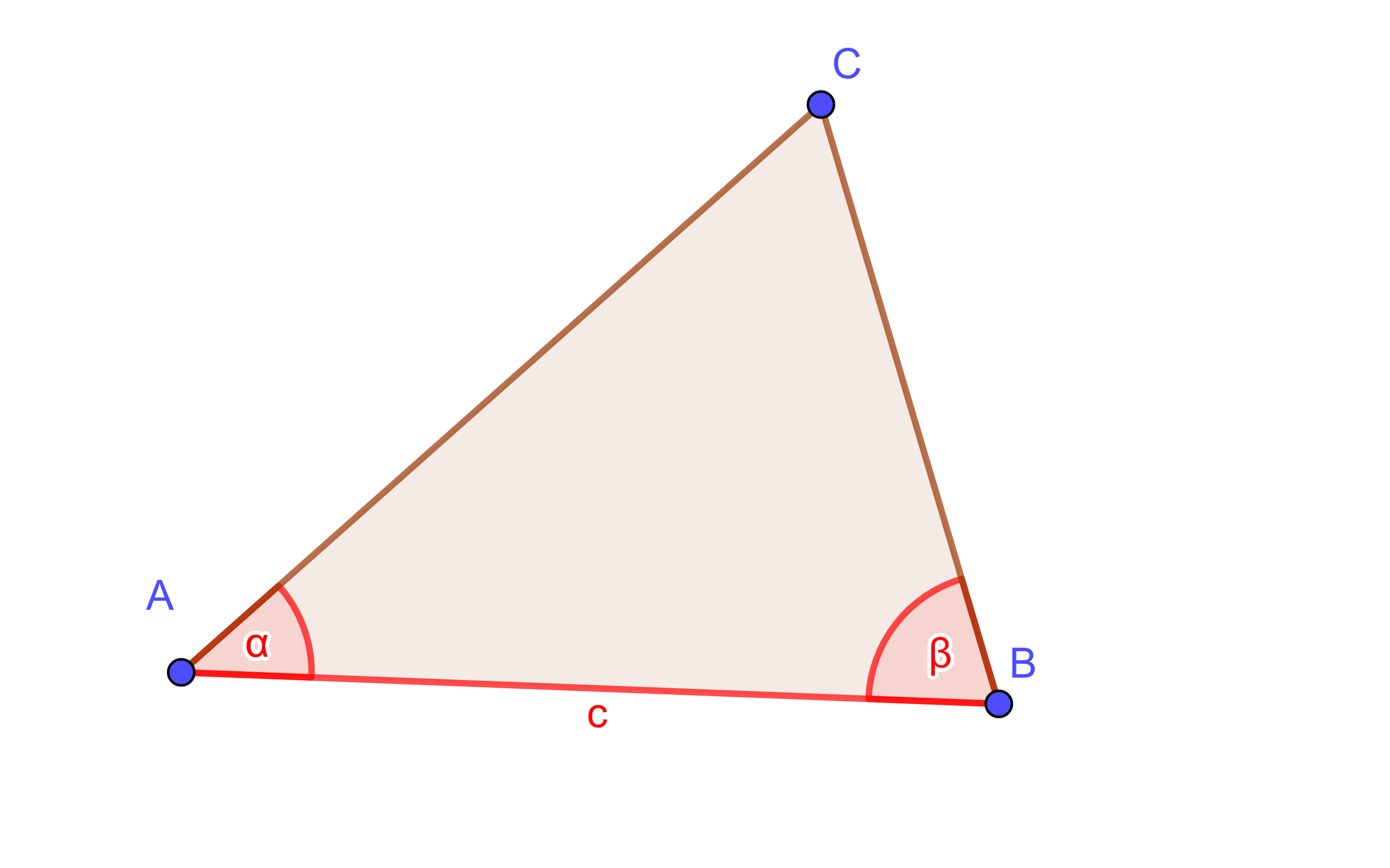 Das Dreieck ABC hat die Winkel $\alpha=58^\circ$ und $\beta=42^\circ$.