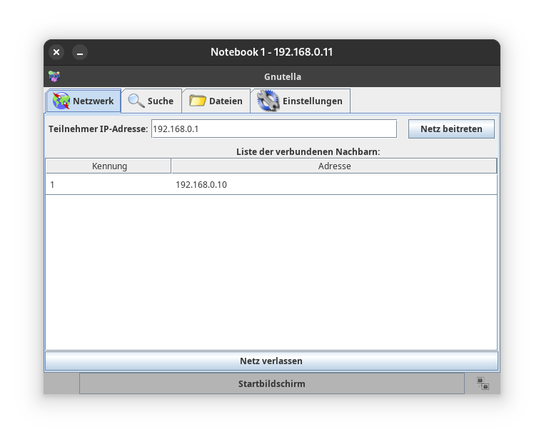 Hinweis: Wenn jetzt Gnutella genutzt werden soll, müssen die IP-Adressen neu angepasst werden!