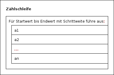 Für zahl = anfangswert bis zahl = endwert mit schrittweite wiederhole: